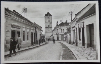 fotopohlednice, ulice, obchody, lidé, neprošlá, Q1