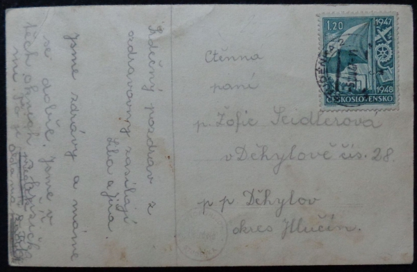 fotopohlednice, zámek N. Horka, prošlá v r. 1947, Q2