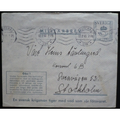 celinová obálka do Stockholmu přepravená polní poštou, strojové razítko VÄSTERÅS 12.2.43, bezvadné