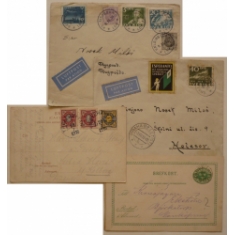 dopisnice 1882, zlomená pohlednice 1910, letecký dopis s nálepkou esperanto 1936 letecký dopis do ČSR