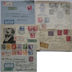 mj. cenné psaní do ČSR se 3 pečetěmi na zadní straně, 3x R dopis a 1x FDC