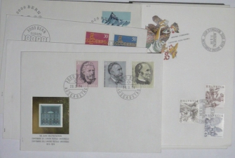 Švýcarsko, sestava 35 kusů FDC (Ausgabetag)