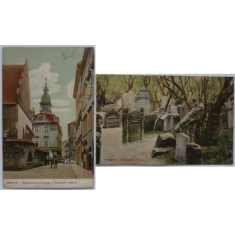 sestava 2 pohlednic; hřbitov s ohybem (není to ostrý lom)