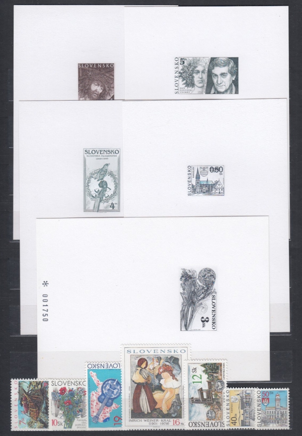 ZZ043, 044 + příležitostné tisky PT17, 28, 29a, 30a, 31 + navíc 7 kusů známek z roku 2001; vše bezvadné, svěží, katalog 75€