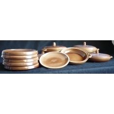 sestava 7 talířů s pokličkou, průměr 19cm; k tomu 5x plytká miska pod talíř; vše absolutně bezvadné