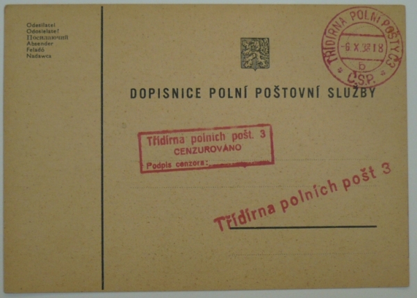 1938 TŘÍDÍRNA POLNÍ POŠTY č.3, b