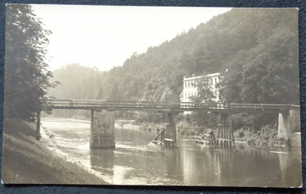 fotopohlednice, pohled přes řeku, most, prošlá, Q2
