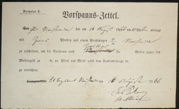 ... se 2 koňmi z Nového Města do Svitav, 16.8.1866