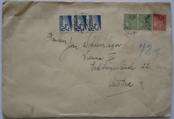 1934 Těžký dopis z Malty, doplatní známky 3x24g