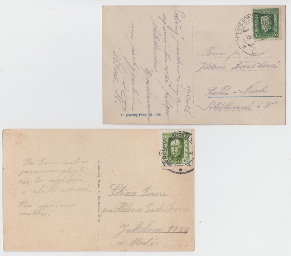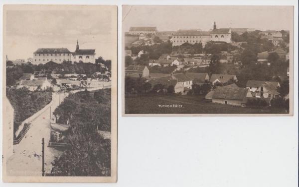 1925 Tuchoměřice, sestava 2 pohlednic