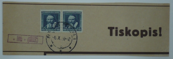 ústřižek se 2 známkami POFIS 300, komenský 40h, fialové rámečkové razítko poštovny *TYRA* (TŘINEC), podací razítko SLEZSKÁ OSTRAVA 6.X.36; luxusní otisk poštovny