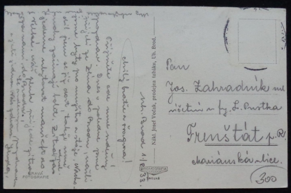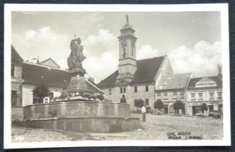 fotopohlednice, kašna s radnicí, prošlá, stržená známka, Q1