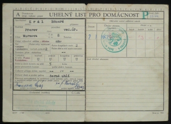 evidenční karta pro příděl uhlí, zajímavý dobový dokument