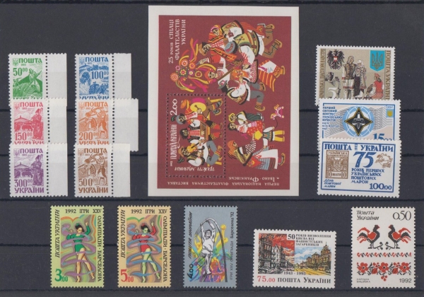 1992 Ukrajina, sestava svěžích známek a aršíku