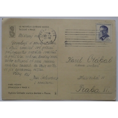 český malíř, pohlednice s podpisem adresovaná akad. sochaři Karlu Otáhalovi; hezké