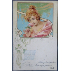 Muttich Kamil, litografická koláž ze série Hálkovy večerní písně, secesní motiv; prošlá Q2