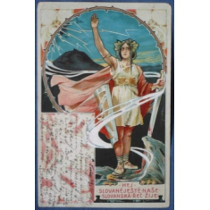 Muttich Kamil, litografická koláž ze série Slovanský trojlist, secesní motiv; prošlá, zlomený roh, Q2-3