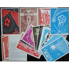 soubor 15 pohlednic s křesťanskou symbolikou, včetně původního obalu; nepoužité, bezvadné