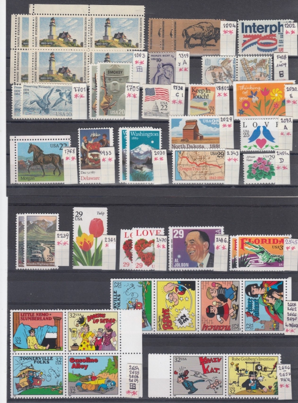 USA, pěkná partie přes 200 známek