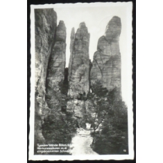Tiské stěny, fotopohlednice, skalní útvary, prošlá, stržená známka, Q2