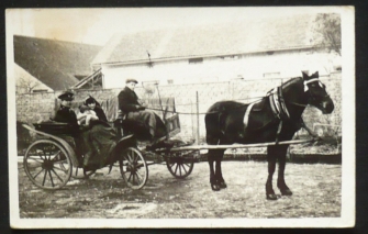 fotopohlednice, koňský povoz, lidé, prošlá, Q2