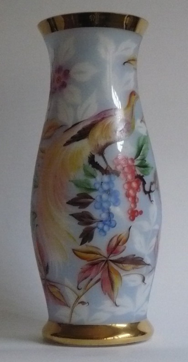 Velká skleněná váza, ručně malovaná