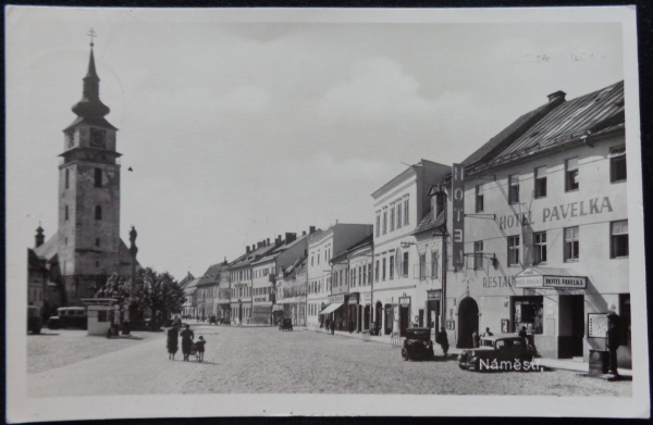 fotopohlednice, náměstí, hotel Pavelka, prošlá, Q1