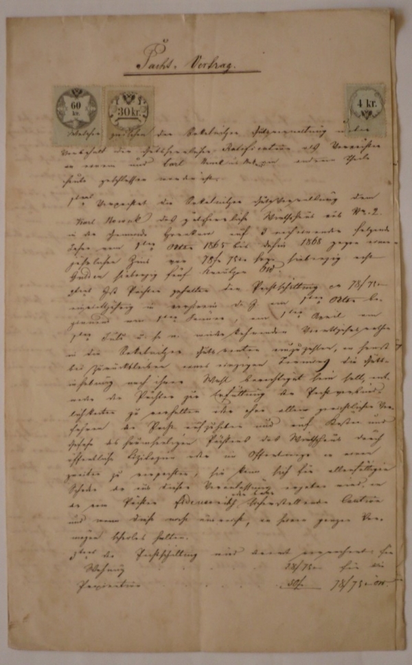 z Mitrovic a Nemyšle, německy psaná nájemní smlouva. hezká frankatura, podpis hraběte Vladimíra Mitrovského; velmi hezké