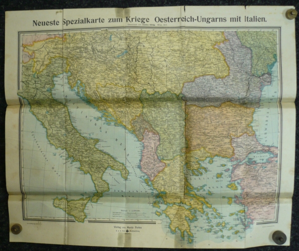 1915 Válečná mapa jižního Uherska a Itálie