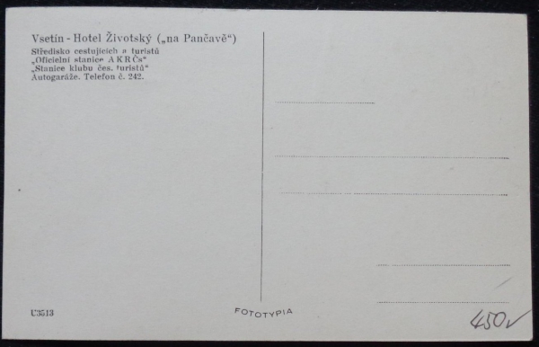 fotopohlednice, hotel Životský, nepoužitá, Q1