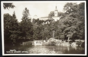 fotopohlednice, partie ze zámecké zahrady, prošlá, Q1