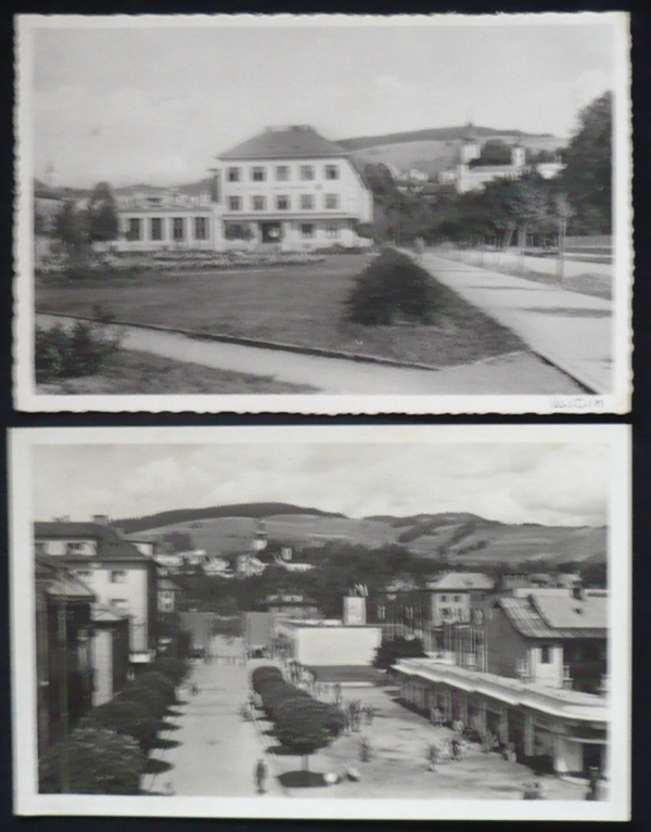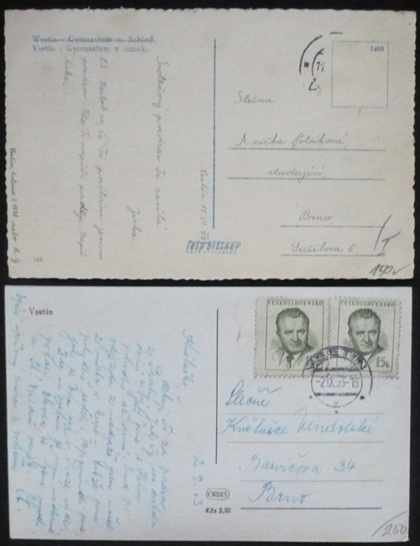 sestava 2ks pohlednic, prošlé, 1x stržená známka, Q2