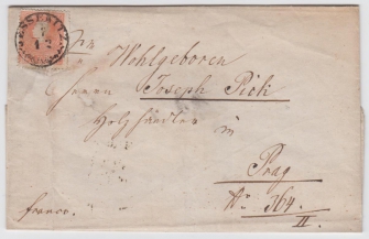 jednostranně vynecháno 8 perforačních otvorů v linii (střih), přebal skládaného dopisu do Prahy, JESSENITZ 7/12; velmi vzácné!!