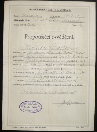 1940 Vysvědčení