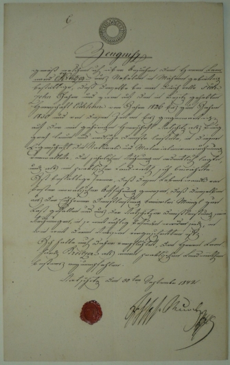 1842 Vysvědčení, kolek 30Kr
