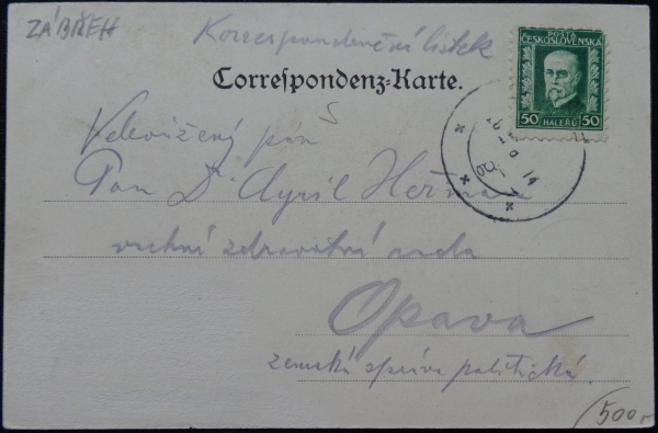 2okénková koláž, prošlá v roce 1926, dlouhá adresa, Q1