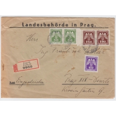 služební R dopis, tříbarevná frankatura; lehké skvrny