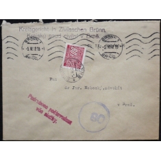 firemní dopis do Brna, razítko ROŽNÁ NAD PERNŠTEJNEM 27.VII.42; příčný sklad