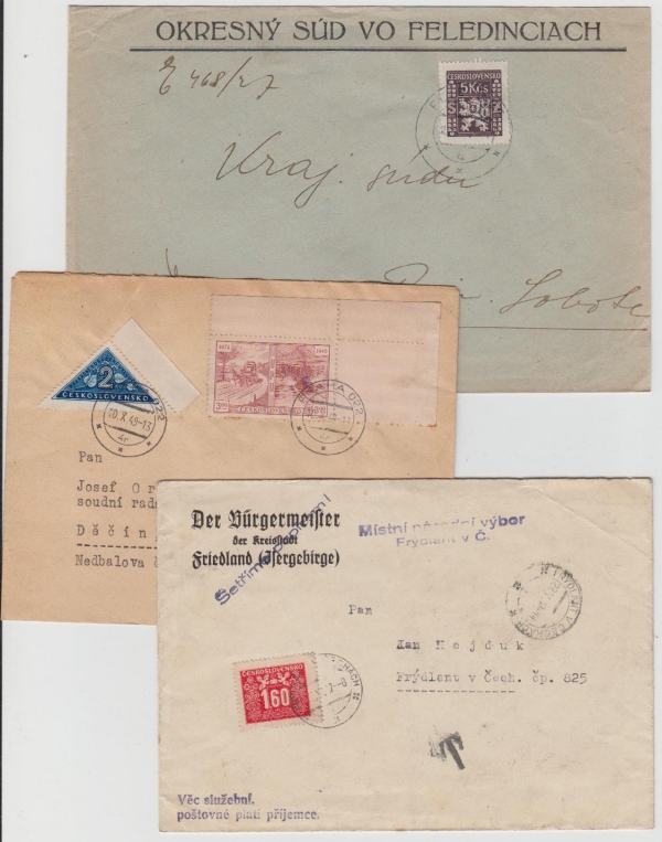 1947 Zajímavá frankatura, sestava 3 dopisů