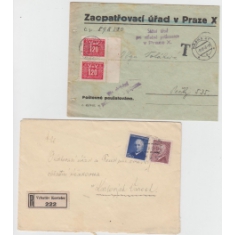 1945 Příležitostné razítko + doplatek, sestava 2 dopisů, zn toho 1x R