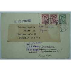 dopis do Moskvy, VALAŠSKÉ MEZIŘÍČÍ 19.III.35, adresát nezastižen, přeposláno do Prahy, vzadu množství průchozích razítek; naříznutá obálka