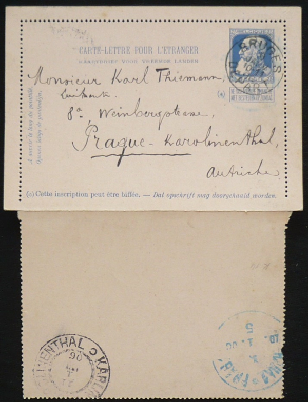 zálepka do Prahy, razítko BRUGES 10.I.06, vzadu příchozí razítko