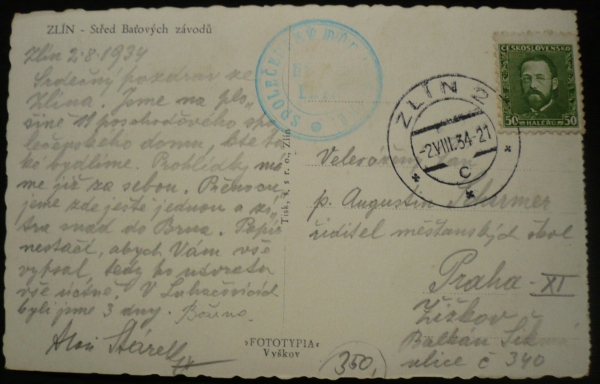 Zlín, fotopohlednice, Baťovy závody, prošlá, Q1
