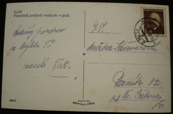 Zlín, fotopohlednice, památník padlých ruských vojínů, prošlá, Q1