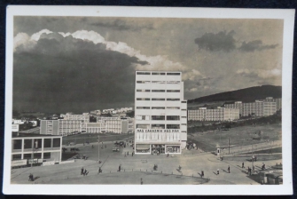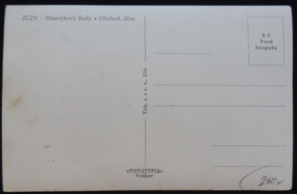 fotopohlednice, budova školy a obchodní dům, nepoužitá, Q2