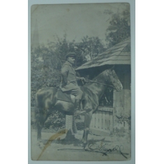 muž na koni, psáno v Bytřici, ateliér O. Šrůtek, Bystřice; zlomený růžek, skvrna, Q2