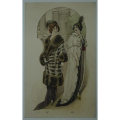 Petr Řičanek, kožišník, reklamní přítisk na pohlednici, dámy v kožichu; Q1