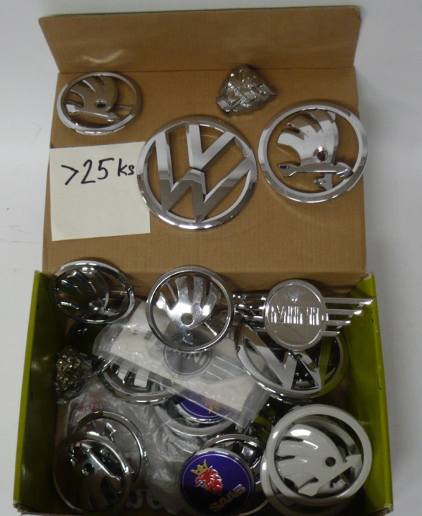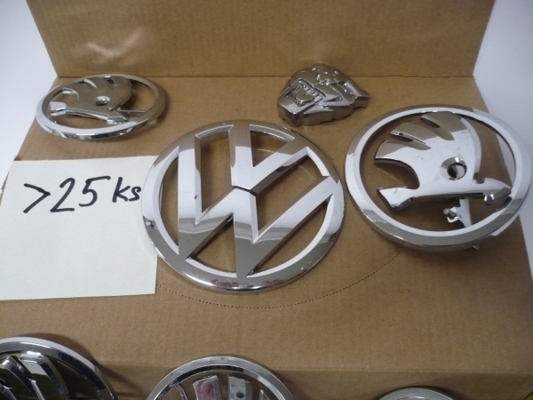 Znaky VOLKSWAGEN, ŠKODA a jiné, celkem 25 kusů