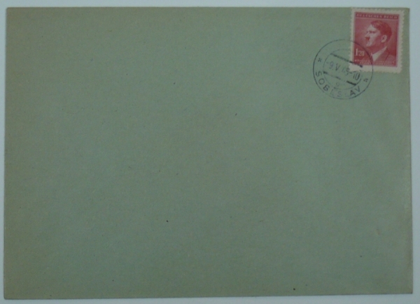 obálka se známkou Hitler 1,20h, podací razítko s vylámaným německým názvem; nepoužitá