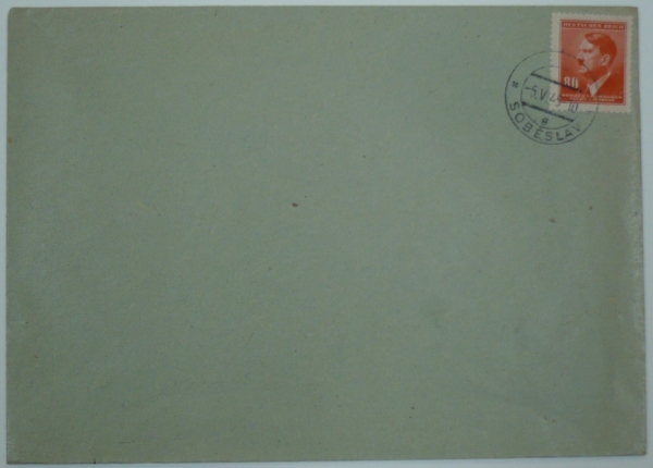 obálka se známkou Hitler 80h, podací razítko s vylámaným německým názvem; nepoužitá